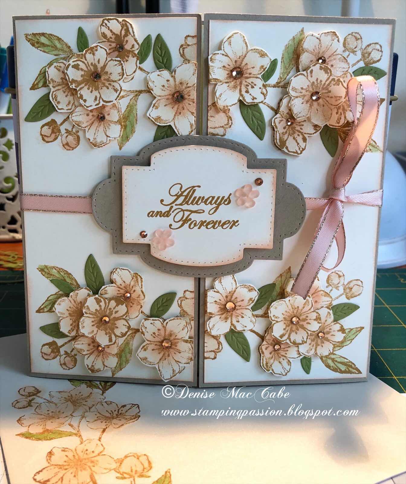I made this wedding card for a friend who is attending a wedding in Italy. I styled it around the wedding invitation which was a gatefold card. I used all Stampin’ Up products.