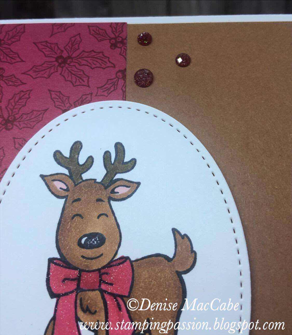 This is my card for a team challenge this week. The brief is to use one of the 10 in colours and products from the Aug-Dec mini catalogue. I’ve used Cinnamon Cider for the background, the new Tis’ the Season DSP and the “Wonderful Gems” and I couldn’t help but add some Wink of Stella to his bow. I’ve coloured the little guy with SU Blends - Lt/Dk Cinnamon Cider, Lt/Dk Real Red, Dk Soft Suede, Lt Flirty Flamingo.