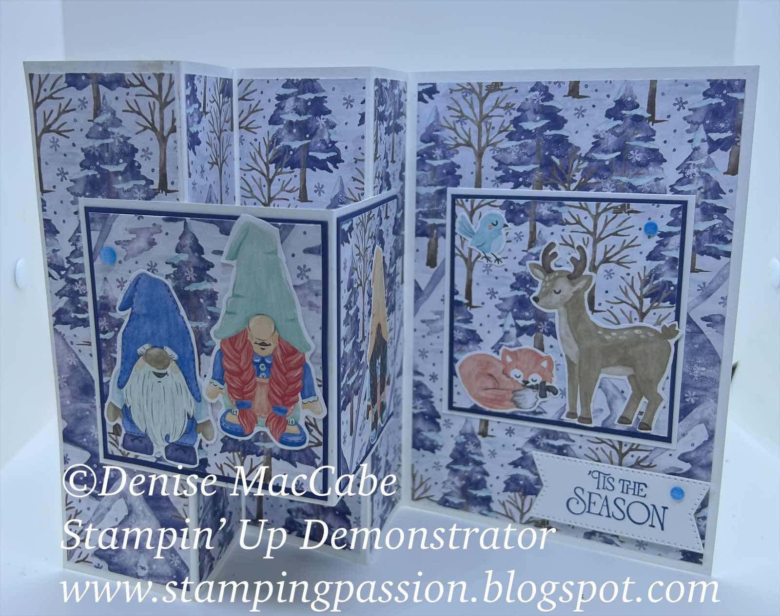 Using the Santa Express DSP and the Storybook Gnomes DSP. I also used the Stylish Shapes dies and the Brightest Glow stamp set.