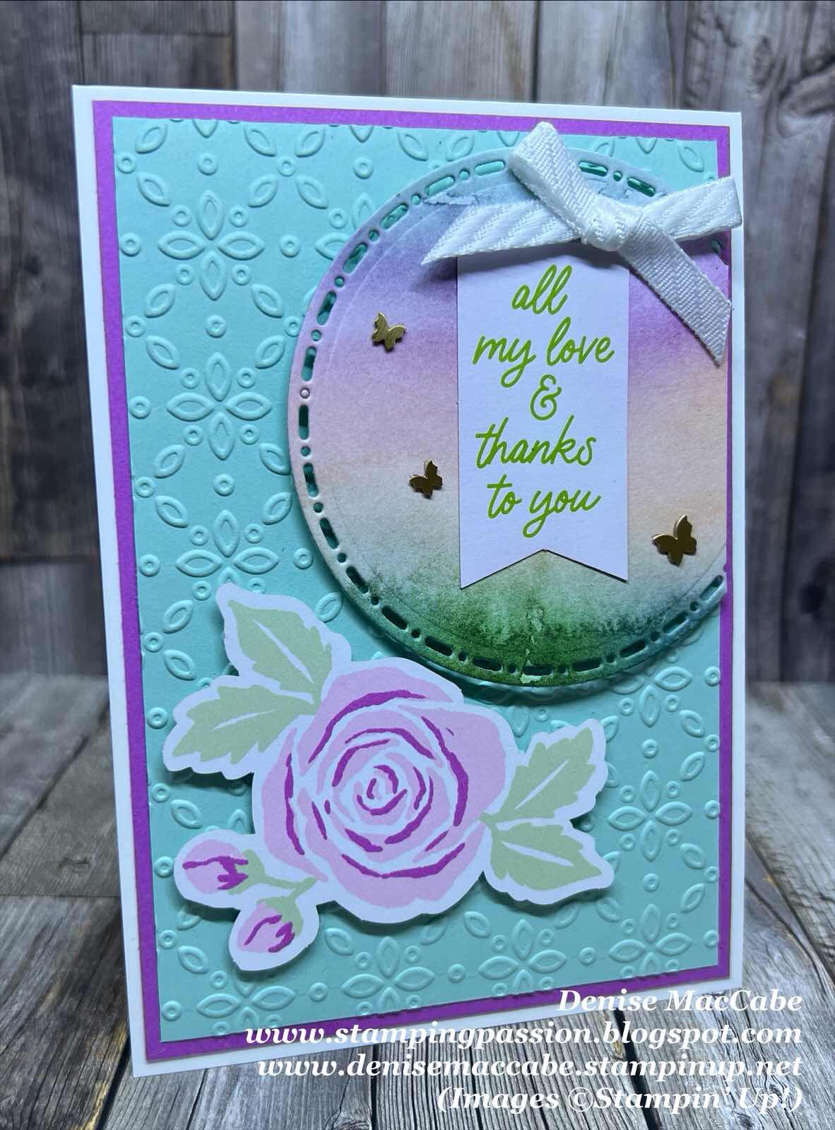 I dry embossed the background matting pieces to add some interest and texture and some embellishments and ribbon to finish off the cards.