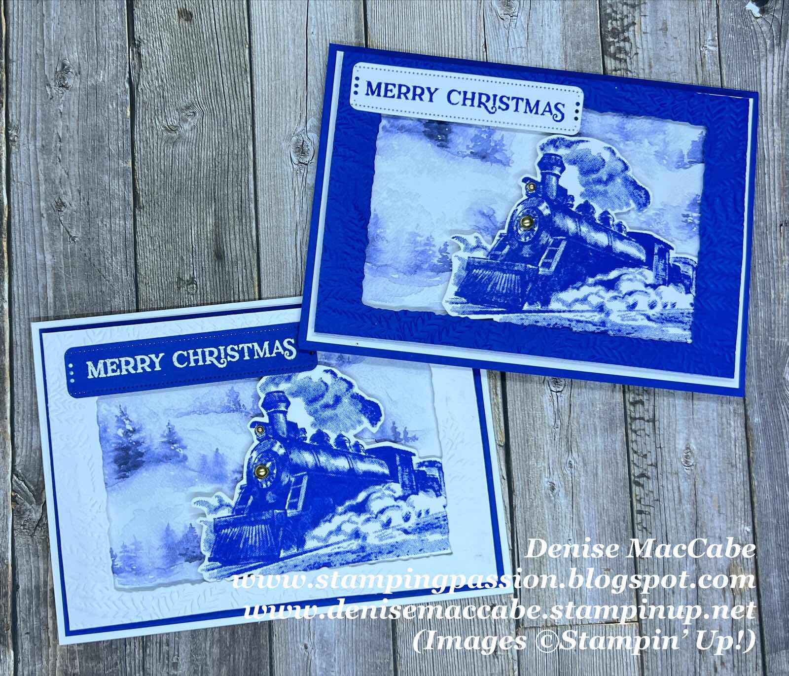 The Greatest Adventure stamp set is in the Online Exclusive section in my SU online store. I had initially overlooked this set but then I saw it again and all I could think was Polar Express! So I got the set and teamed it with the Winter Meadow DSP from the Annual Catty.