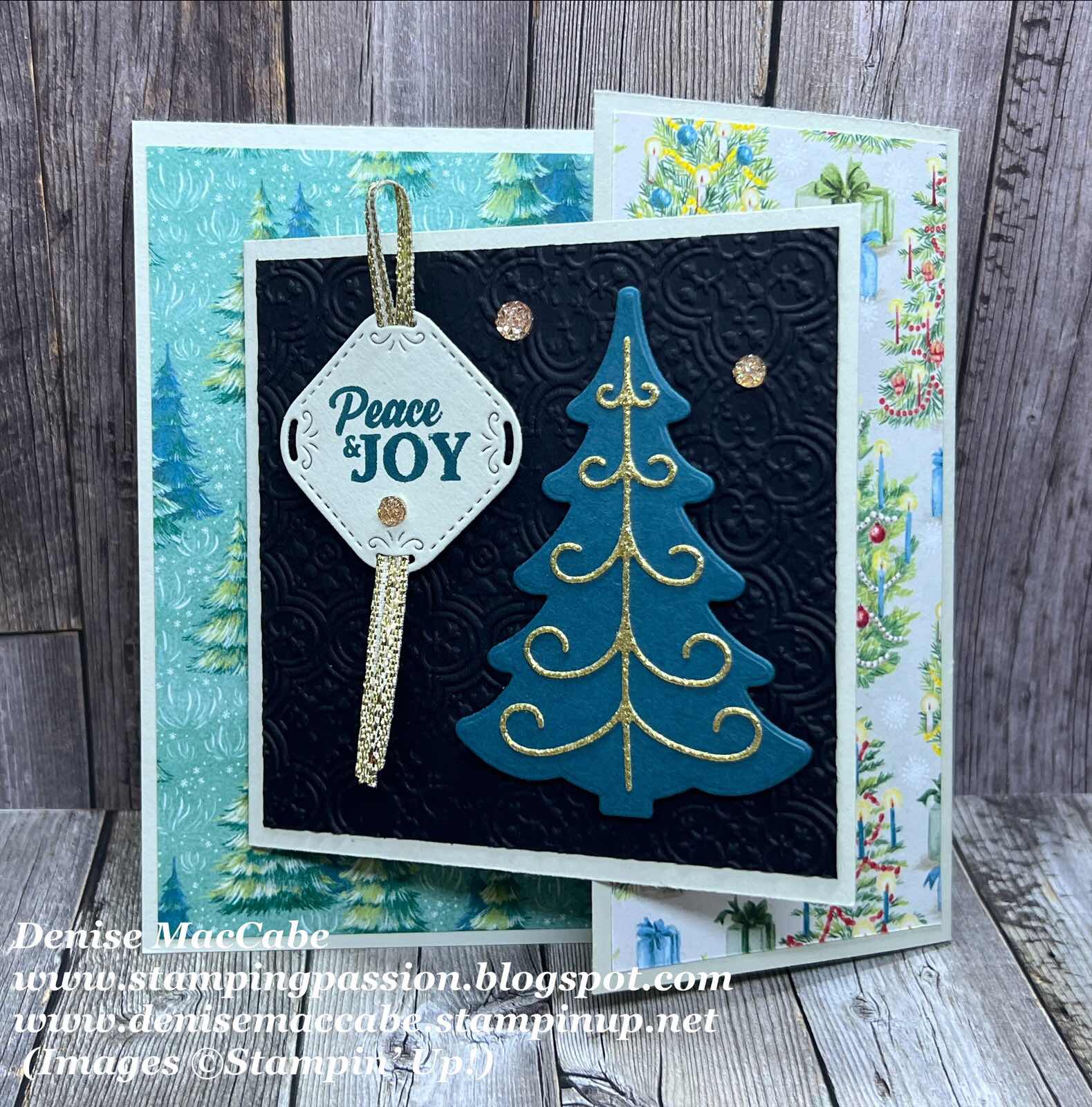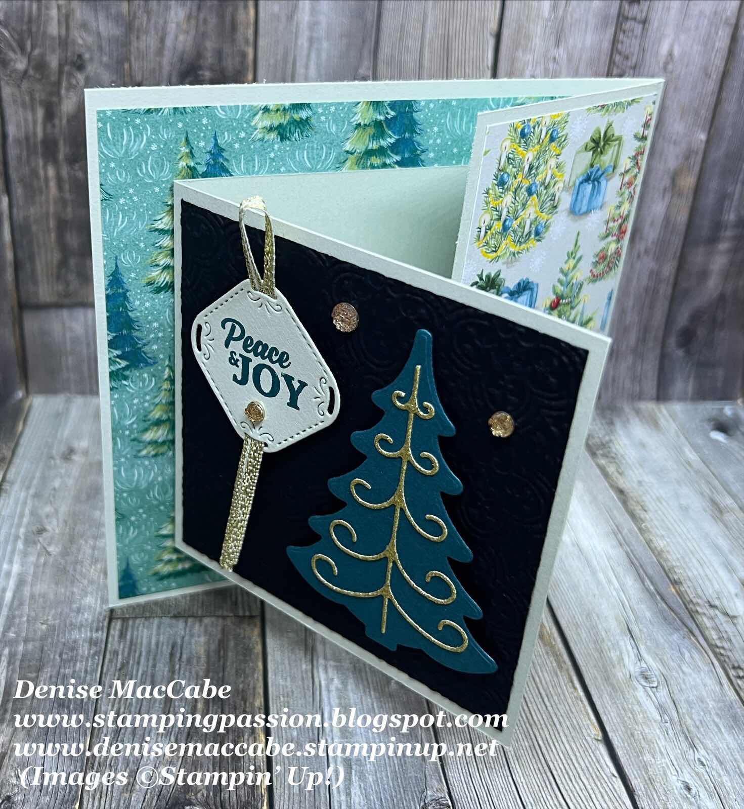 Today’s card is a simple fun fold card using the Decorative Trees bundle, Peaceful Seasons bundle and Sentimental Christmas DSP, all these products are on the Last Chance Products list. I love my fun fold cards and sometimes the simpler fun fold designs are much more enjoyable to do.