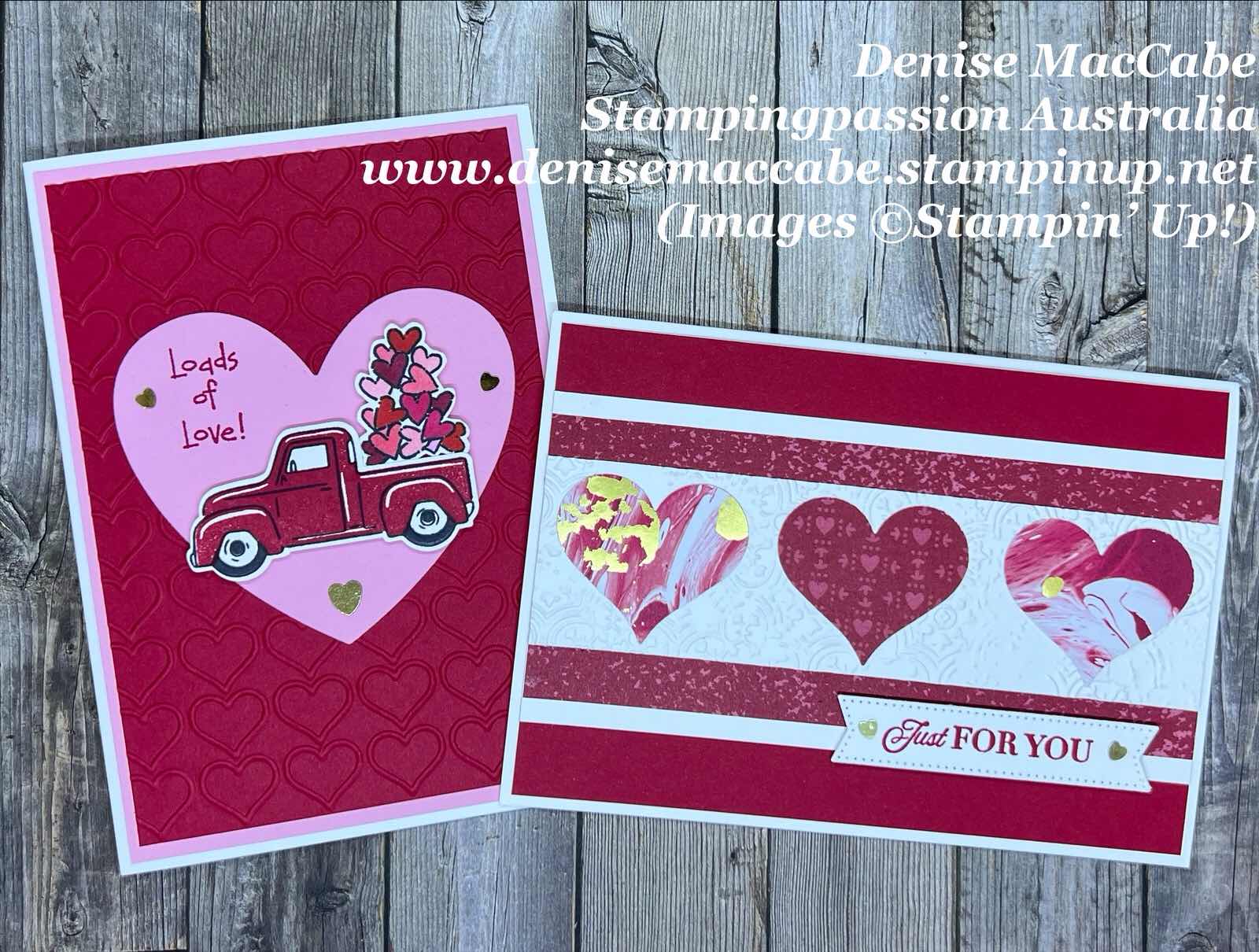 I pulled out a retired heart embossing folder and the very first stamp set I got in my starter kit, “Loads of Love” to stamp the sentiment and the loads of hearts in the back of the truck.