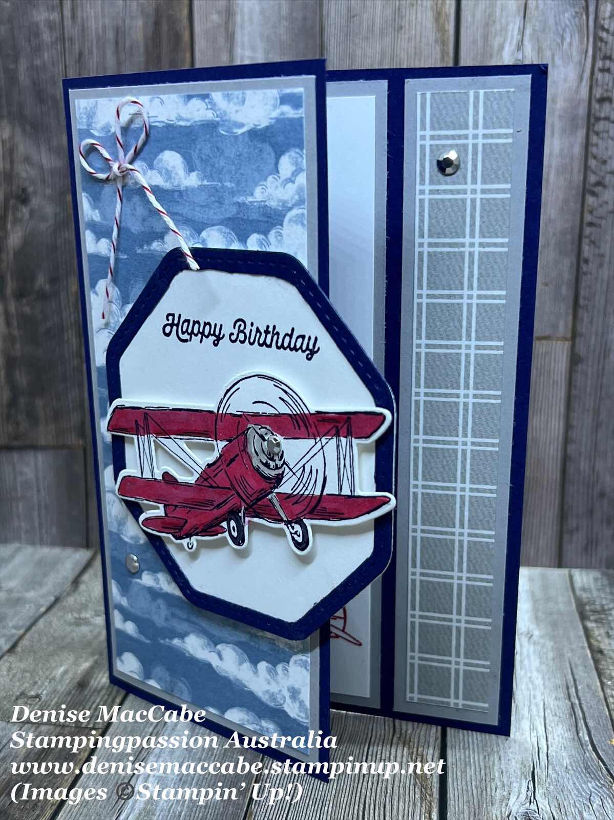 I used the Adventurous Sky suite and the Memorable Blooms dies to create this masculine birthday card. I coloured the bi-plane using Stampin’ blends, added some red and white bakers twine and so,e metallic gems to complete the card. Link here to my video https://youtu.be/zzLw1NGuMJY?si=14KCdrztswAj_cbk