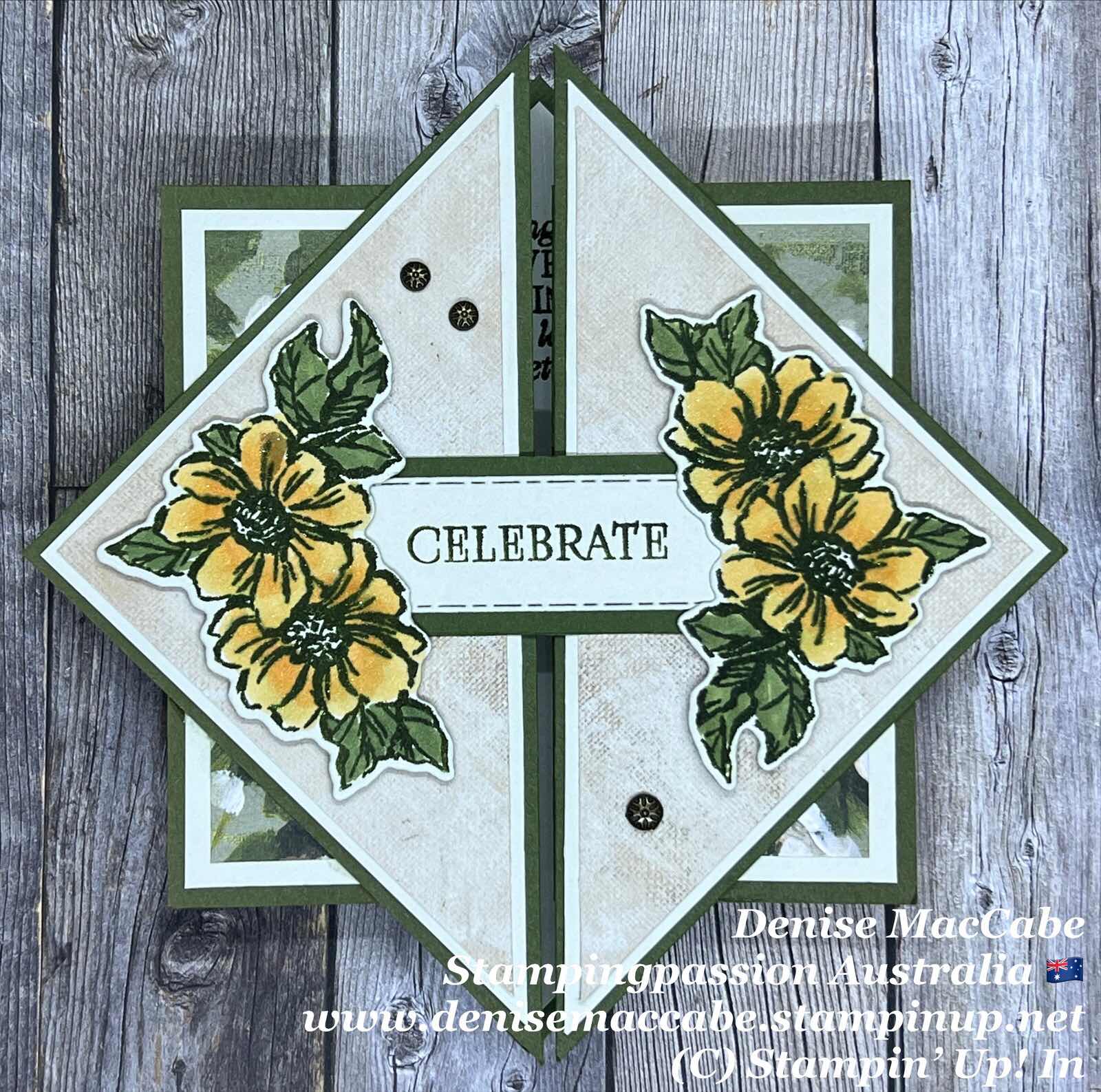 Stamp and decorate your card as you like as it looks very different every time you create this fun fold card.