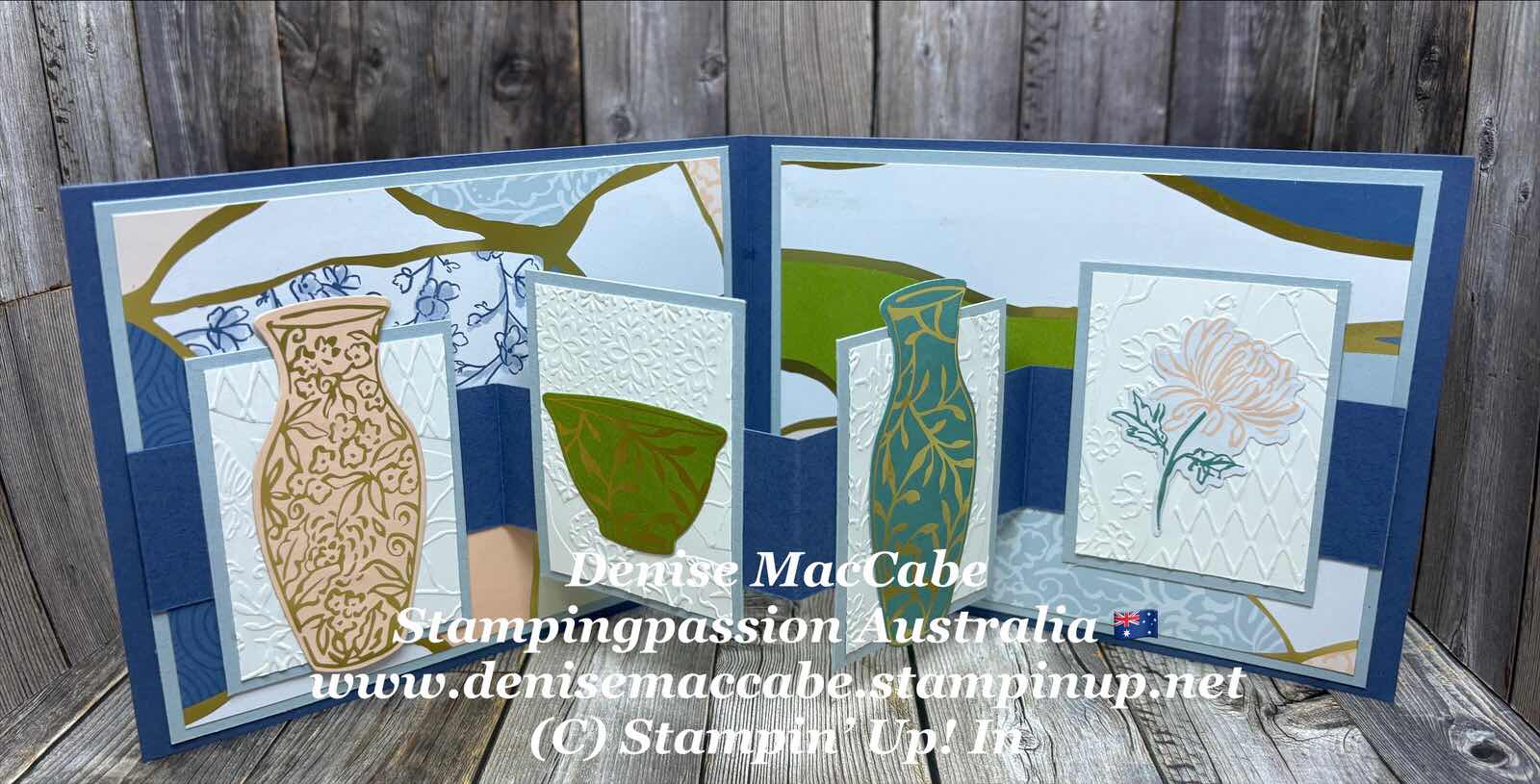 Then either cut vases and bowls etc from the beautiful DSP or stamp your own images to adhere to the inside 4 panels and front panel.